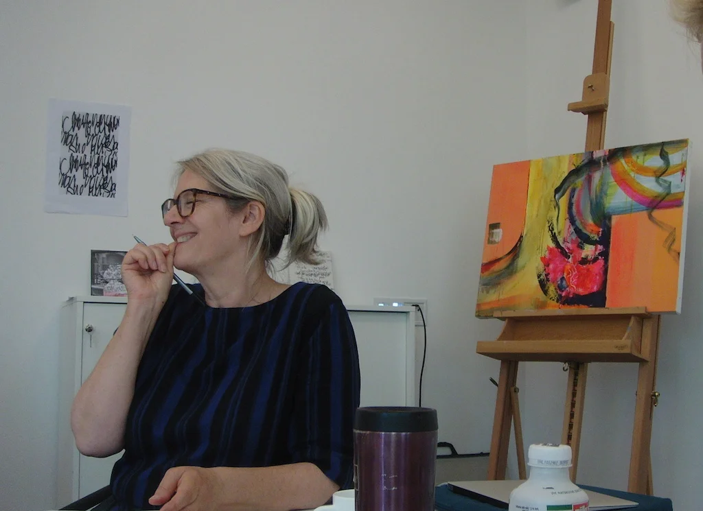Lynne Cameron is a contemporary painter and writer who currently lives in Oxford. She travels frequently to New Zealand. Alongside vibrant paintings on paper and canvas, her expanded visual arts practice includes monoprints, text collages, and video, in a series of projects that attend to the beauty in our damaged world and to our brave attempts at building relationships across misunderstanding and conflict.